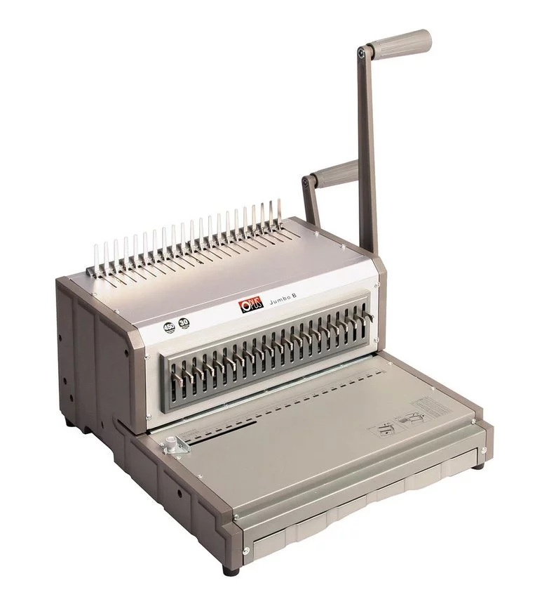 Bindownica firmy OPUS przeznaczona do oprawiania dokumentów grzbietami plastikowymi. Dzięki metalowej obudowie oraz dobrze rozmieszczonym, ergonomicznym dźwigniom do dziurkowania dokumentów i rozciągania grzbietów, urządzenie to jest bardzo funkcjonalne i łatwe w obsłudze. Dodatkowo wyposażona została w regulator marginesu oraz boczny ogranicznik papieru, a dzięki naniesionej skali grubości grzbietów jest bardzo czytelna. Idealna dla średnich i dużych biur oraz do punktów usługowych. Następczyni cieszącej się uznaniem klientów bindownicy „JUMBO”.