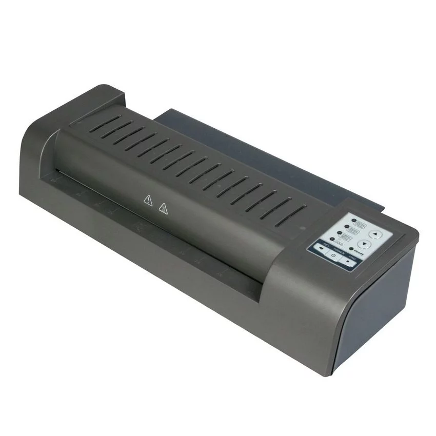 Laminator biurowy do formatu A3. Cechuje go nowoczesny design, niezawodność oraz łatwość użytkowania. Wyposażony w panel sterowania. Wykonuje laminację na zimno i na gorąco.