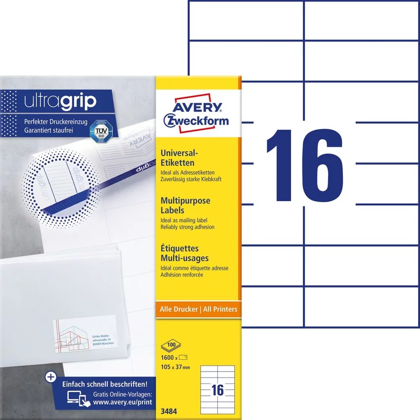 Etykiety uniwersalne Avery Zweckform to idealne rozwiązanie dla Twojego biura. Nadają się do zastosowania w drukarkach atramentowych, laserowych oraz kopiarkach. Zaoszczędź czas i pieniądze wybierając etykiety marki Avery. Dzięki zastosowaniu innowacyjnej technologii QuickPeel, etykiety łatwo się przyklejają i odklejają.Uniwersalne, trwałe etykiety samoprzylepne