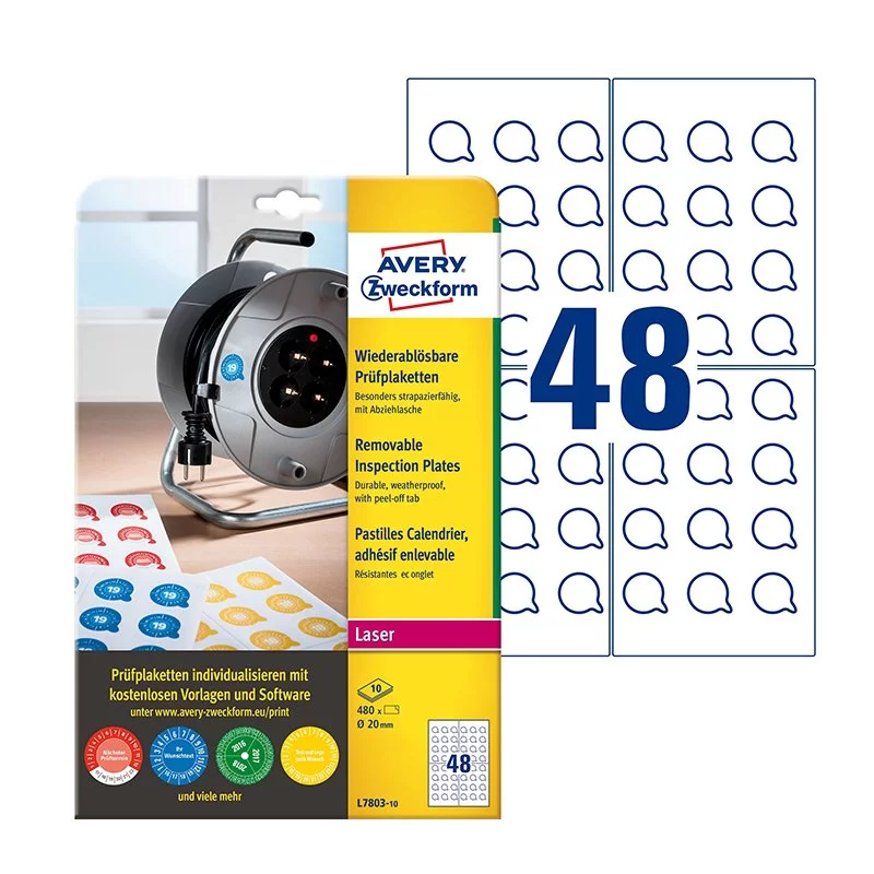 Etykiety Inspekcyjne Avery Śr.20 10/A4 A'48 Białe No.L7803-10
