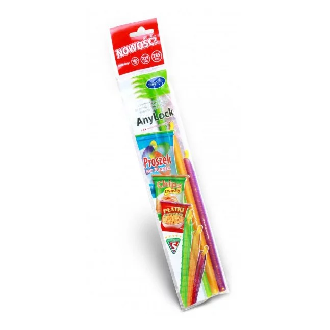 - Zestaw trzech klipsów ułatwiający ponowne zamkniecie woreczków foliowych i torebek z produktami sypkimi takimi jak: makaron, mąka, kawa, chipsy, proszek do prania, karma dla zwierząt, itp. po ich otwarciu.