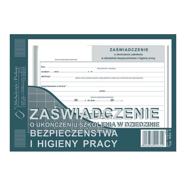 Zaświadczenie o Ukończeniu Szkolenia w Dziedzinie BHP A5 80k marki MiP