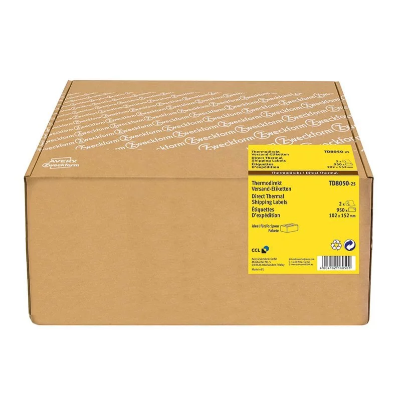 Etykiety Wysyłkowe Do Termodruku 102x152 mm 2 Rolki/950 szt. Białe Avery TD8050-25