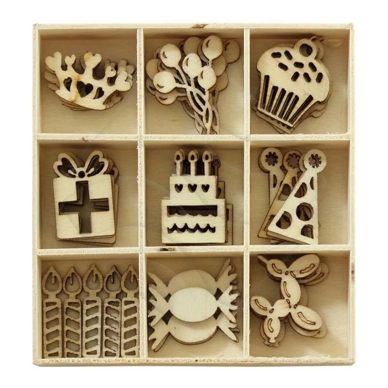 - Drewniane ozdoby w pudełku