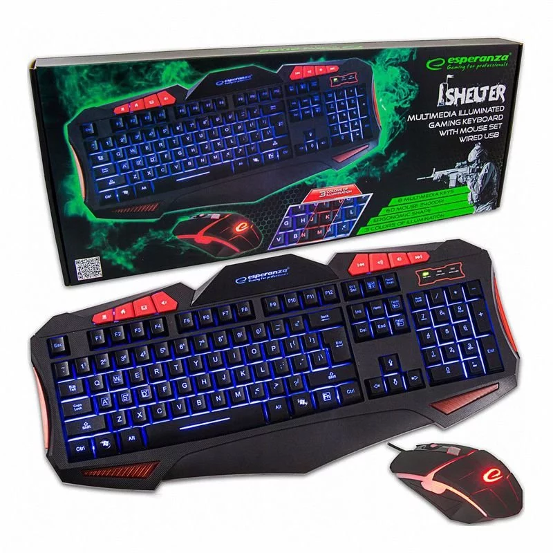 Klawiatura + Mysz USB EGK3000 Shelter Podświetlana /Esperanza