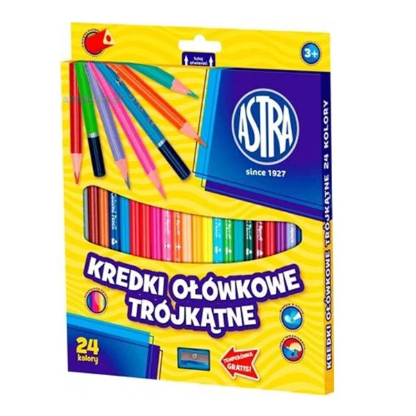 Kredki ołówkowe trójkątne marki ASTRA 24 kolorów + temperówka GRATIS!