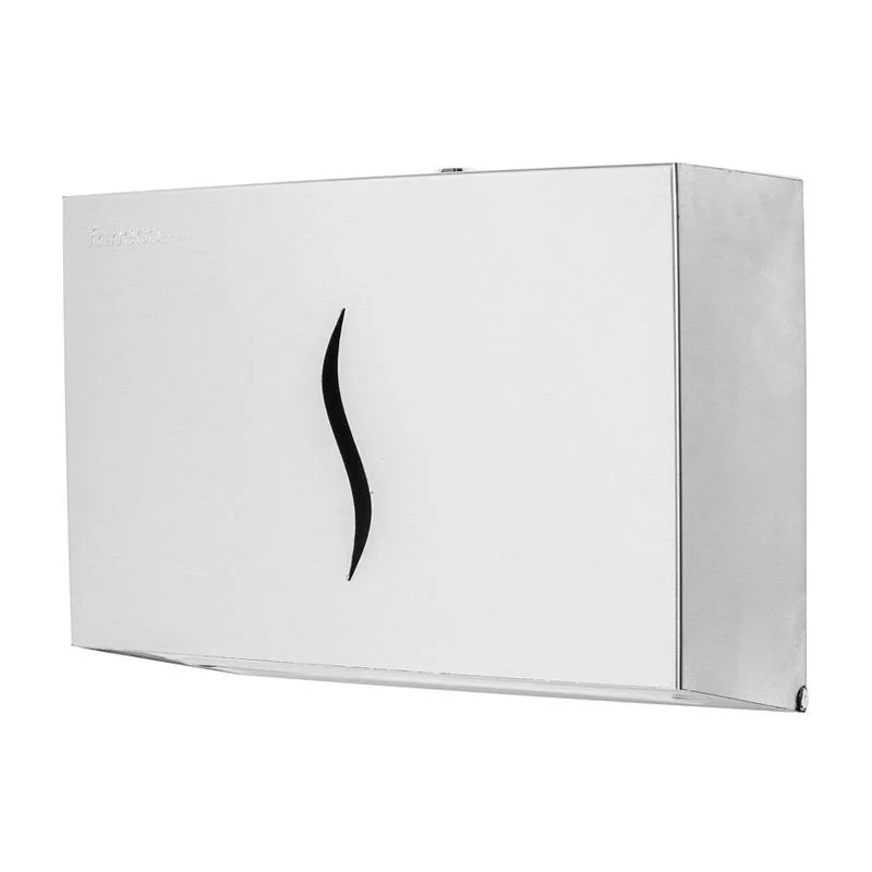 Elegancki, nowoczesny, funkcjonalny - taki właśnie jest podajnik ręczników HIT S polskiej marki FANECO. Ten naścienny, wykonany z matowej stali nierdzewnej pojemnik wyróżnia się stylowym designem komponującym się z wystrojem każdego pomieszczenia. Podajnik jest zamykany na kluczyk a otwór w kształcie litery S na jego przodzie, pozwala kontrolować na bieżąco poziom zużycia papieru.