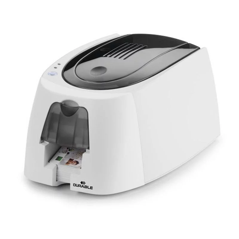 Urządzenie jest wyposażone w taśmę barwiącą YMCKO oraz 100 pustych kart. Dodatkowo, zawiera podajnik z wygodnym dostępem oraz zbiornik na 25 grubszych i 40 standardowych kart. Karty można zaprojektować samodzielnie, używając do tego bezpłatnego programu online, dostępnego na stronie www.duraprint.eu. Gotowe karty, mogą być stosowane z różnego rodzaju etui do kart identyfikacyjnych, które są również dostępne w ofercie marki Durable.
