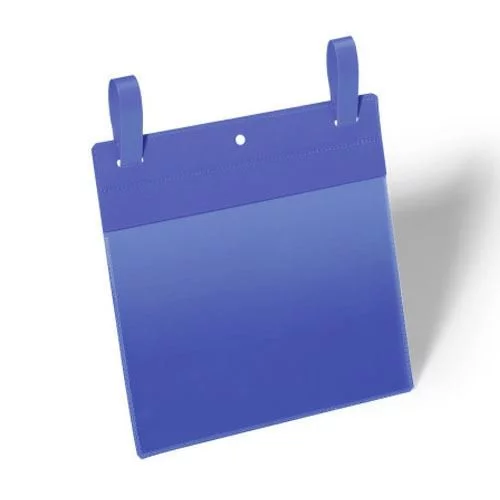 Kieszeń magazynowa posiadająca paski montażowe zakończone w kształcie strzałek, umożliwiające zaczepienie w otworach mocujących. Przeznaczona jest do informacji umieszczonych długoterminowo na pojemnikach do przechowywania czy skrzyniach do transportu. Dzięki swej wytrzymałości sprawdza się na ruchomych kontenerach transportowych, np. metalowych skrzynkach. Kieszenie nie wypadają podczas silnych wstrząsów. Niebieska tylna ścianka oraz przednia przezroczysta wykonane są z wytrzymałego polipropylenu. Posiada klapkę, która chroni dokumenty przed wilgocią i kurzem. Pełna przezroczystość i możliwość skanowania.