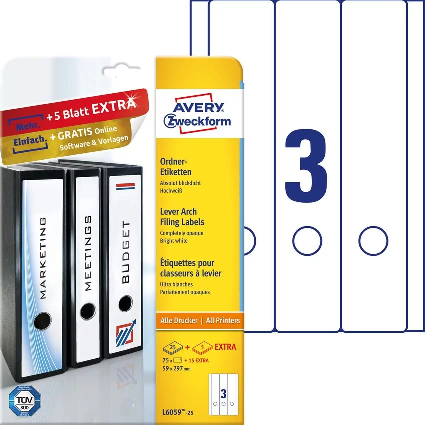Etykiety Samoprzylepne Avery 59x297mm 3/A4 A'25+5 Białe No.L6059-25