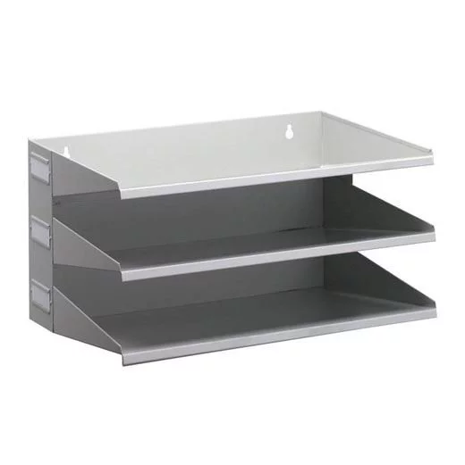 - Sorter do dokumentów wykonany z metalu z trzema półkami do wygodnego sortowania dokumentów