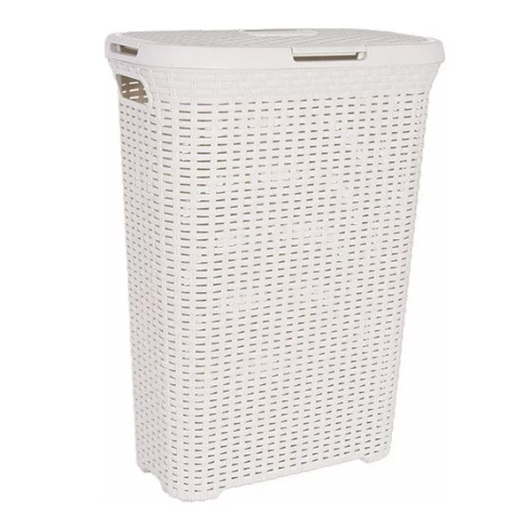 - Stylowy kosz na bieliznę 40L marki Curver, wykonany z tworzywa imitującego rattan.