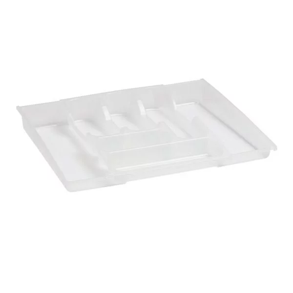 Wkład na sztućce z możliwością zmiany jego wielkości pasuje do większości szuflad w kuchni. Wystarczy rozsunąć obie części pojemnika, aby uzyskać pożądaną wielkość. Wkład chroni wnętrze szuflady przed zarysowaniami. Solidnie wykonany pojemnik będzie służył przez wiele lat. Dostępny w trzech neutralnych kolorach.
