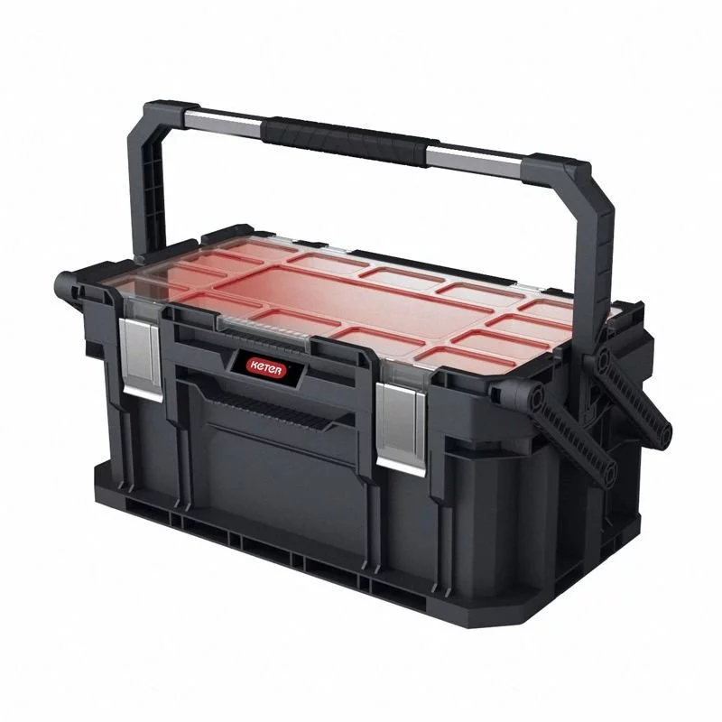Pojemna skrzynka narzędziowa to rozwiązanie dedykowane tym wszystkim, którzy kompletują funkcjonalny warsztat podręczny. Duża pojemność umożliwia pogrupowanie uniwersalnego zestawu narzędzi i akcesoriów. Wykonana z trwałego tworzywa i wyposażona w system wsporników, który ułatwia rozłożenie zawartości. Dzięki wygodnej i solidnej, metalowej rączce skrzynka może być bezpiecznie transportowana. Produkt jest kompatybilny z mobilnym systemem Connect Rolling System.