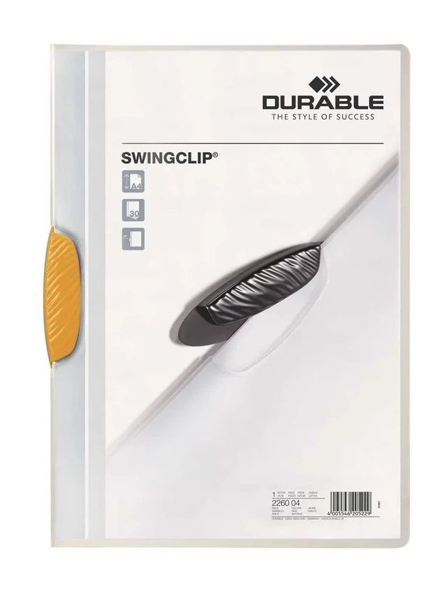 Skoroszyt Zaciskowy A4 PP Swingclip 30 Kartek Żółty /Durable 226004
