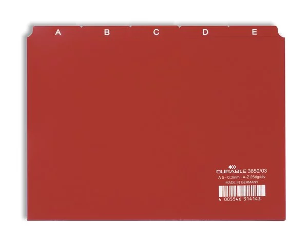 Przekładki do Kartotek A-Z 5/5 PCW 0,3mm Indeksy 40mm Poziome A5 25cz. Czerwone /Durable 365003