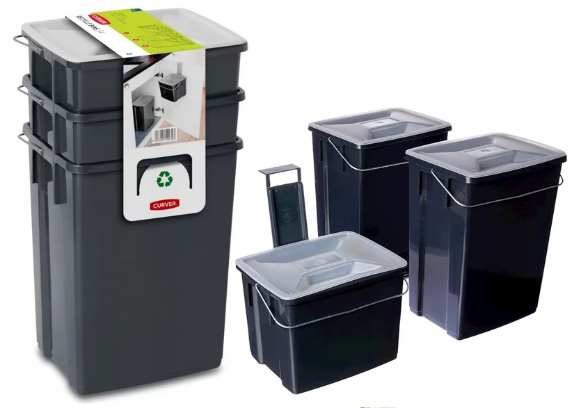 Zestaw do segregacji odpadów Curver został opracowany w wygodny i łatwy sposób organizowania i oddzielania różnych odpadków kuchennych, śmieci i materiałów nadających się do recyklingu.