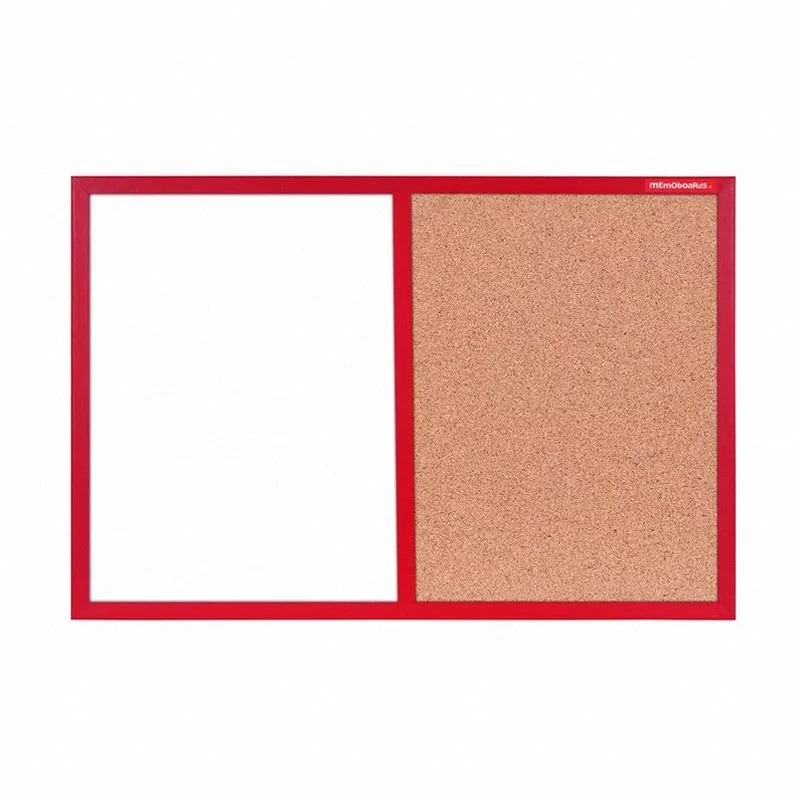 Tablica Duo Korkowo-Suchościeralna Magnetyczna Biała Rama Drewniana Lakierowana Czerwona 60x40 cm /Memobe