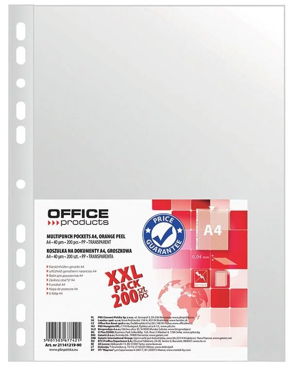 Koszulki Na Dokumenty Office Products PP A4 Groszkowe 40 mikr. 200Szt.