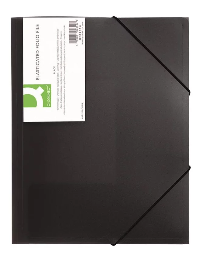 Teczka Z Gumką Q-Connect PP A4 400 mikr. 3-Skrz. Transparentna Czarna