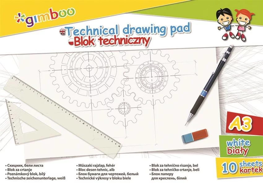 Blok Techniczny Gimboo A3 10 Kart. 150Gsm Biały