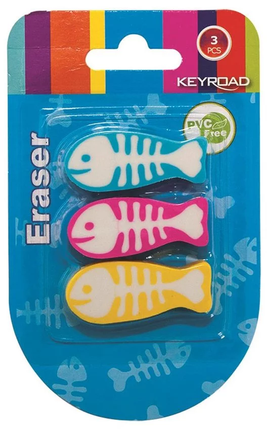 Gumka Uniwersalna Keyroad Ryba 3Szt. Blister Mix Kolorów