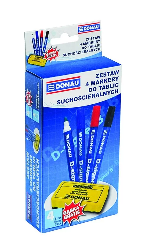 Zestaw 4 Markery Do Tablic Donau D-Signer B Okrągły Mix Kolorów Gąbka Gratis