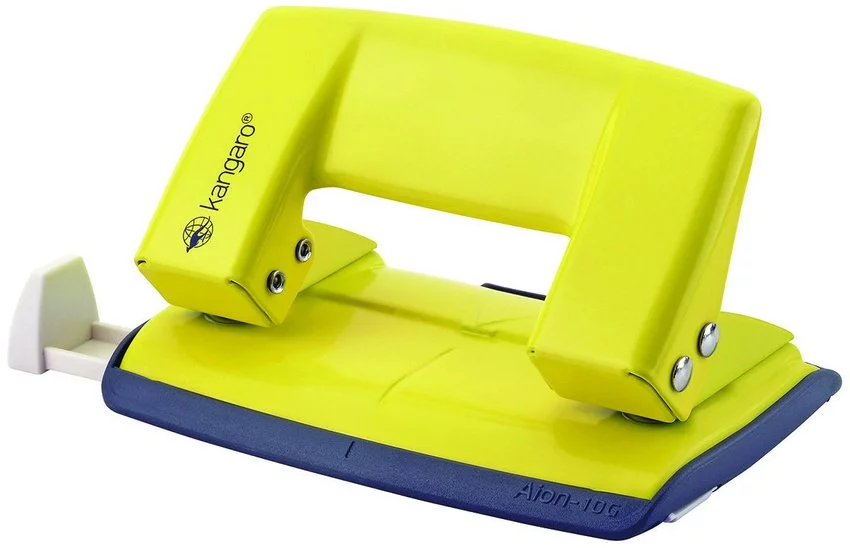 Dziurkacz Kangaro Aion-10G/S Dziurkuje Do 10 Kartek Metalowy W Pudełku PP Żółty