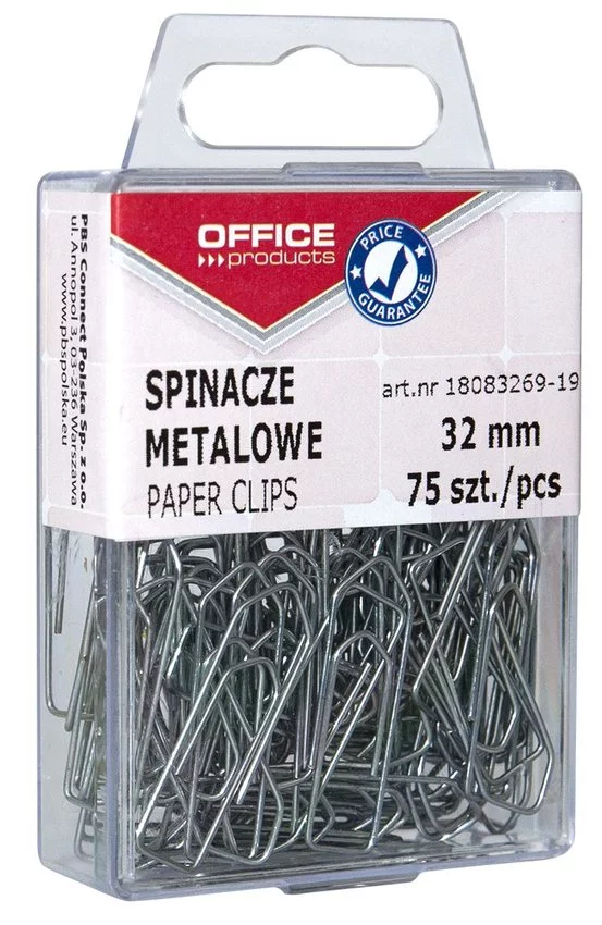 Spinacze Metalowe Office Products 32mm W Pudełku 75Szt. Srebrne