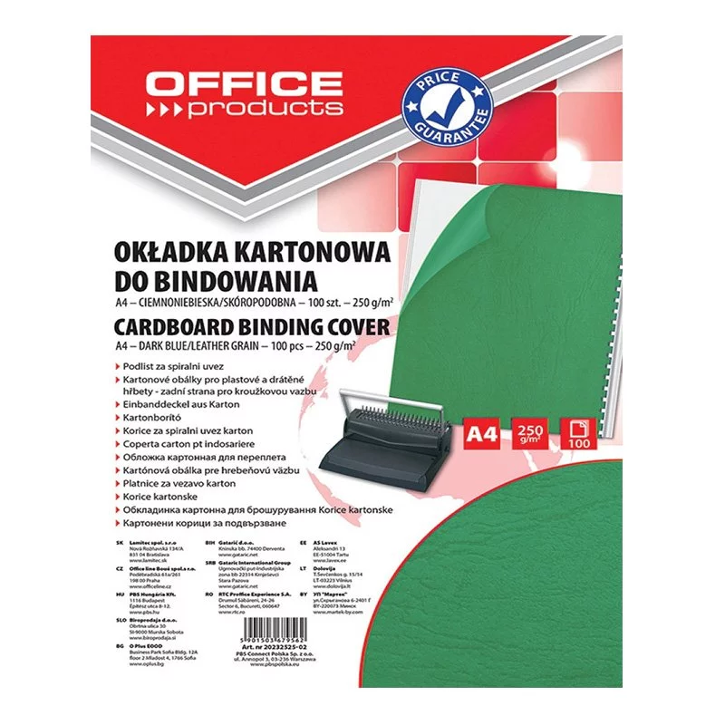 Okładki Do Bindowania Office Products Karton A4 250Gsm Skóropodobne 100Szt. Zielone