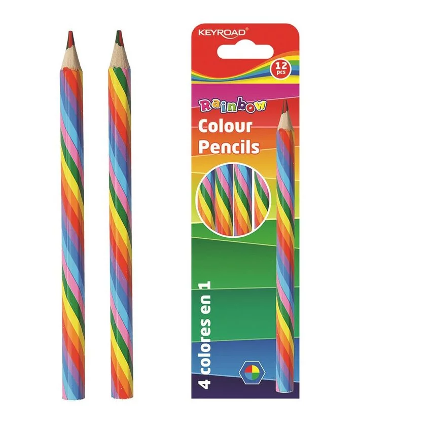 Kredki Ołówkowe Keyroad Sześciokątne Tęczowe 12Szt. Mix Kolorów