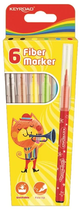 Flamastry Keyroad Fiber Marker 6Szt. Na Zawieszce Mix Kolorów