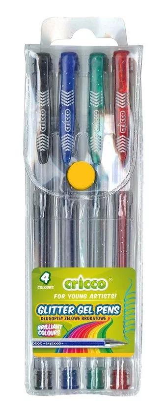 Długopisy Żelowe Brokatowe Cricco 4 Kol.Etui