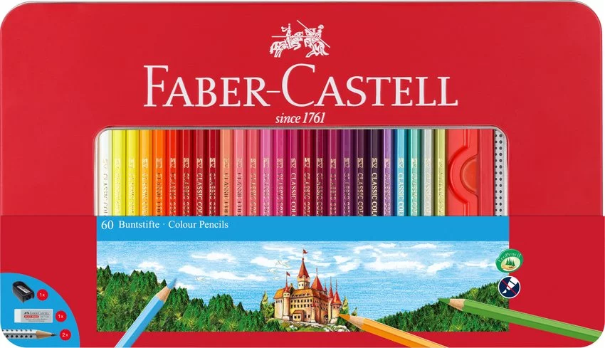 Kredki Zamek 60 Kol.+Akcesoria Opak. Metalowe Faber-Castell