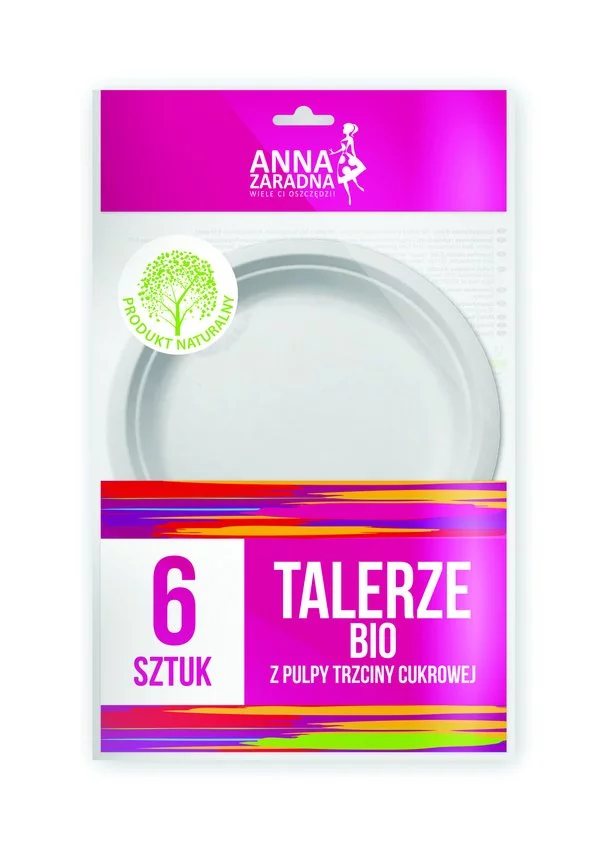 Talerze bio ANNA ZARADNA z pulpy trzciny cukrowej 6 szt. biały