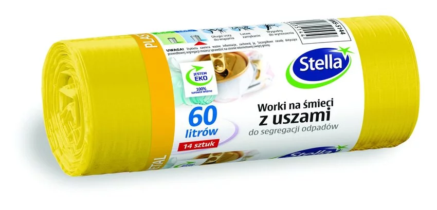 Worki Na Śmieci LDPE Do Segregacji Odpadów Plastikowych i Metalowych 60L A'14 z Uszami Żółte /Stella