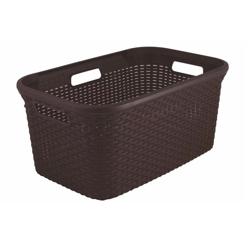 • Stylowy kosz do magla 45L marki Curver w ciemnobrązowym kolorze. Wykonany z trwałego tworzywa imitującego rattan, zapewnia wentylację