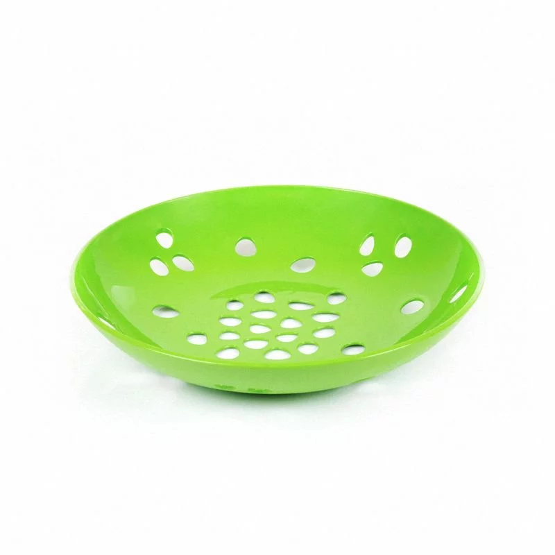 Efektowna misa na owoce świetnie prezentuje się w jadalni, salonie oraz w kuchni. Okrągły i poręczny kształt pozwala na łatwe sięganie po owoce. Produkty łatwe do czyszczenia, nawet przy wielokrotnym myciu w zmywarce naczynia nie odkształcają się i zachowują swój kształt oraz kolory przez wiele lat. Wykonana z wysokiej jakości, utwardzonego, błyszczącego tworzywa sztucznego. Misa posiada otwory zapewniające odpowiednią cyrkulację powietrza, dzięki czemu owoce dłużej zachowują świeżość a specjalnie wyprofilowane nóżki zapewniają dodatkową stabilizację misy. Produkt wolny od szkodliwego dla zdrowia związku Bisfenol A!