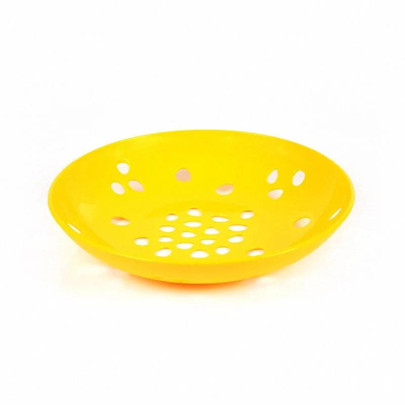 Efektowna misa na owoce świetnie prezentuje się w jadalni, salonie oraz w kuchni. Okrągły i poręczny kształt pozwala na łatwe sięganie po owoce. Produkty łatwe do czyszczenia, nawet przy wielokrotnym myciu w zmywarce naczynia nie odkształcają się i zachowują swój kształt oraz kolory przez wiele lat. Wykonana z wysokiej jakości, utwardzonego, błyszczącego tworzywa sztucznego. Misa posiada otwory zapewniające odpowiednią cyrkulację powietrza, dzięki czemu owoce dłużej zachowują świeżość a specjalnie wyprofilowane nóżki zapewniają dodatkową stabilizację misy. Produkt wolny od szkodliwego dla zdrowia związku Bisfenol A!