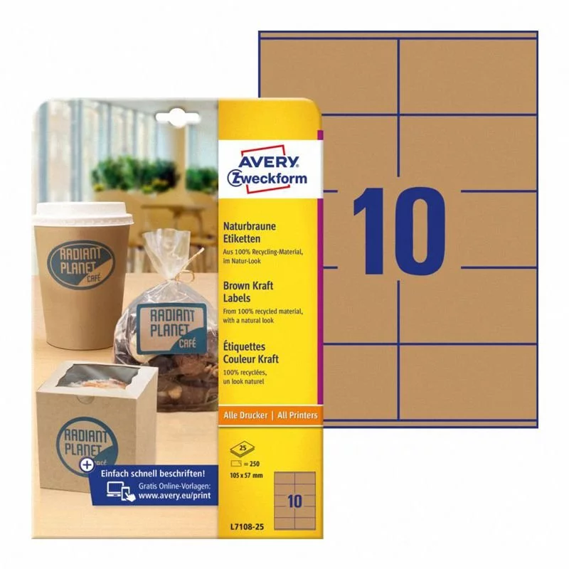 Naturalne Etykiety Samoprzylepne Avery Prostokątne 105x57 10/A4 Brązowe No.L7108-25