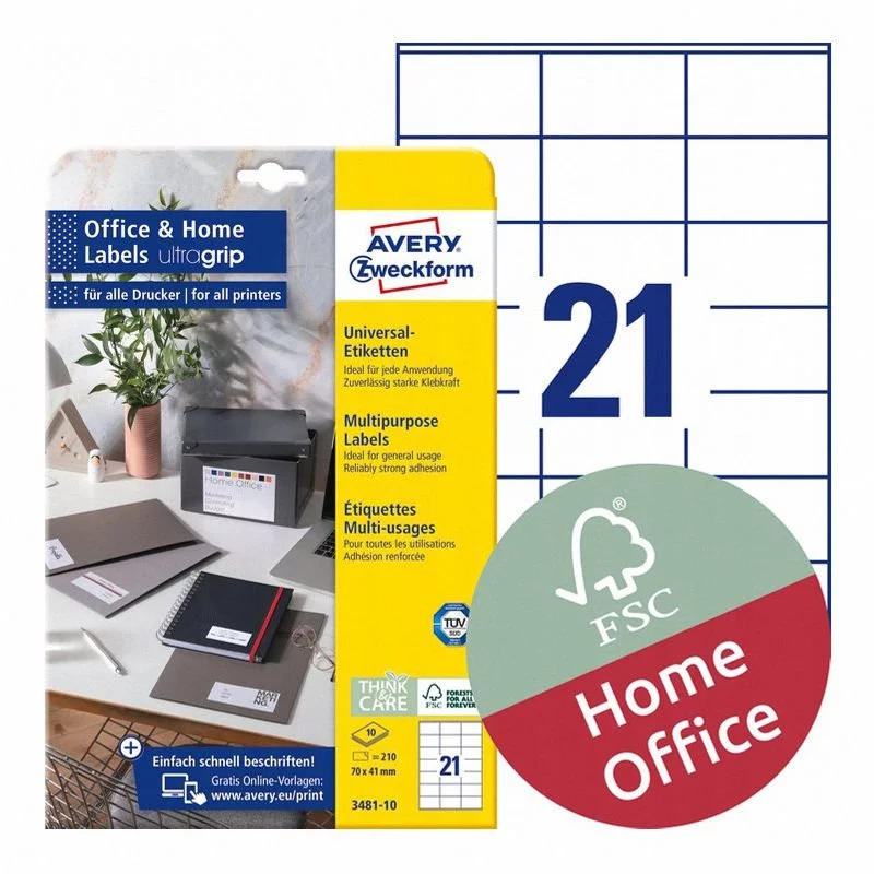 Etykiety Samoprzylepne Avery Office&Home 70x41 21/A4 A'10 Białe No.3481-10