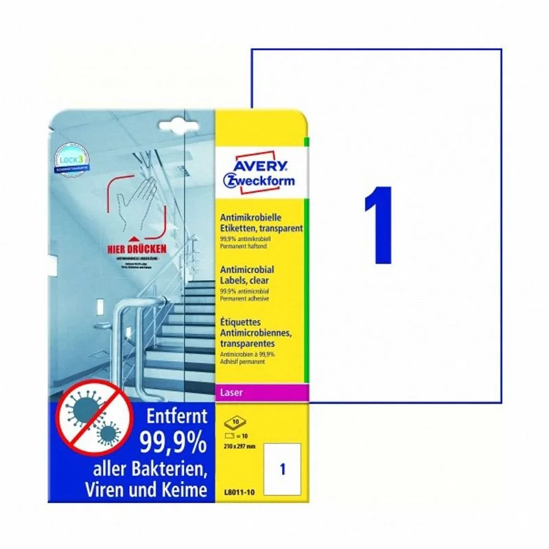 Folia Samoprzylepna z Powierzchnią Antydrobnoustrojową Avery 210x297 1/A4 A'10 Przezroczysta No.L8011-10