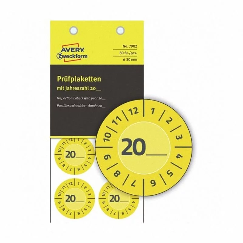 Etykiety Inspekcyjne Vinylowe 20XX Rok do Uzupełnienia Avery śr.30 A'80 Żółte No.7902