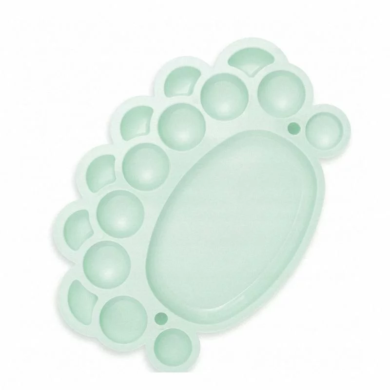 - Paleta malarska plastikowa, owalna, 1 główna komora, 9 dużych i 6 małych. Polecana głównie do farb akrylowych, temper i akwareli.