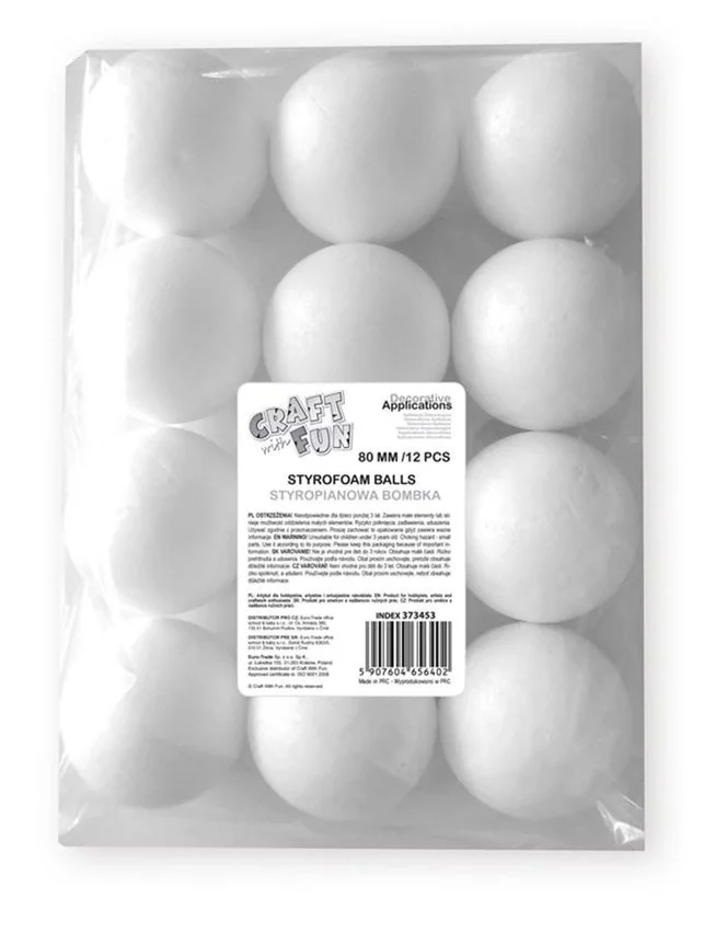 Styropianowe kulki do ozdabiania o średnicy 8cm.W opakowaniu 12szt. Idealne jako ozdoby choinkowe.