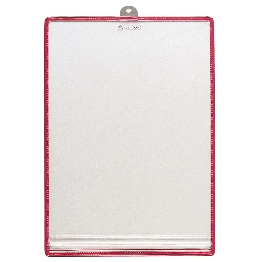 Panele prezentacyjne pionowe z uszkiem do zawieszenia formatu A4 z górnym otwarciem wykonane są według opatentowanej technologii firmy Tarifold. Seria Safety pozwala dodatkowo zabezpieczać dokument specjalną holograficzną naklejką plombą zabezpieczającą dokument. Wszystkie produkty marki Tarifold są wykonane z materiałów najwyższej europejskiej jakości pozwalającej użytkownikowi na korzystanie z produktu bez żadnych awarii, świadczy o tym gwarancja producenta która wynosi do 10 lat! Specjalny stalowy drut powleczony kolorowym tworzywem powoduje, że panele są z jednej strony bardzo elastyczne a zarazem wytrzymałe na wszelkiego rodzaju zgięcia, z kolei matowy materiał PVC eliminuje refleksy świetlne ułatwiając czytanie nawet przy bezpośrednio padającym świetle. Dostarczane są w opakowaniach po 5 sztuk wraz z 5 zakładkami indeksującymi umożliwiającymi organizację prezentowanych treści. Kolor paneli: bordowy.