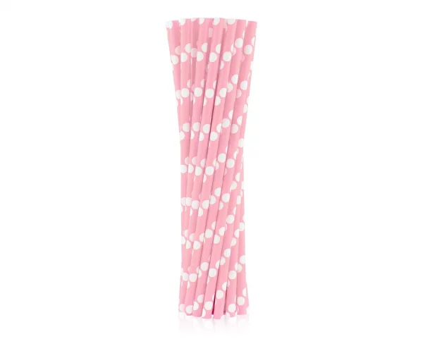Rurki (słomki) pap. jasnoróżowe w białe groszki, 6x197mm / 24 szt. /GoDan